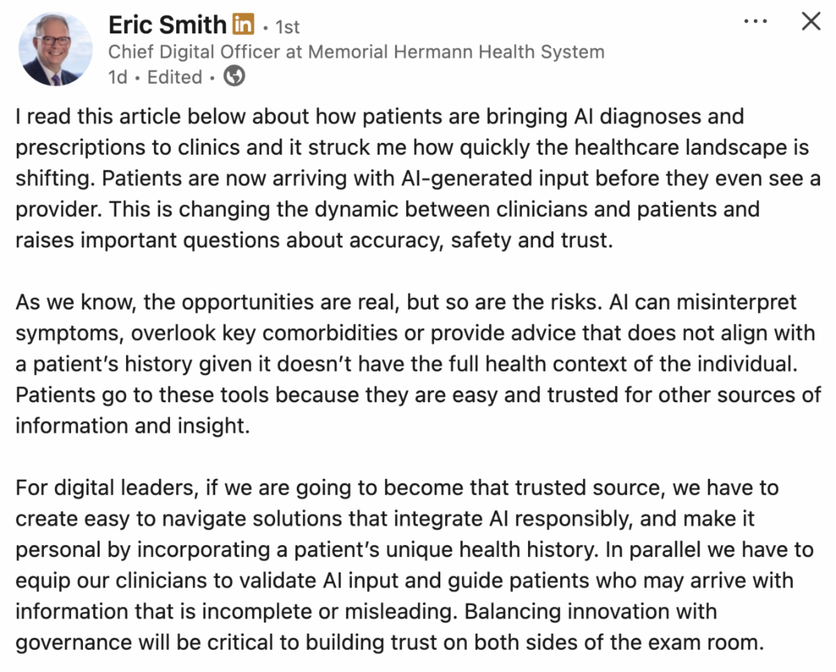 - Zafar Chaudry, MD, SVP – Chief Digital Officer & Chief AI and Information Officer, Seattle Children's
