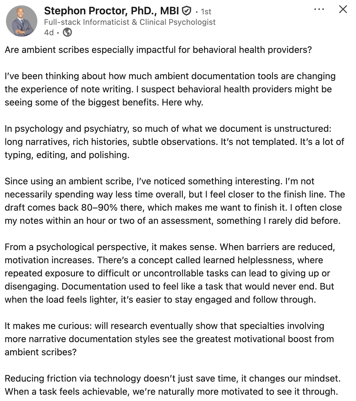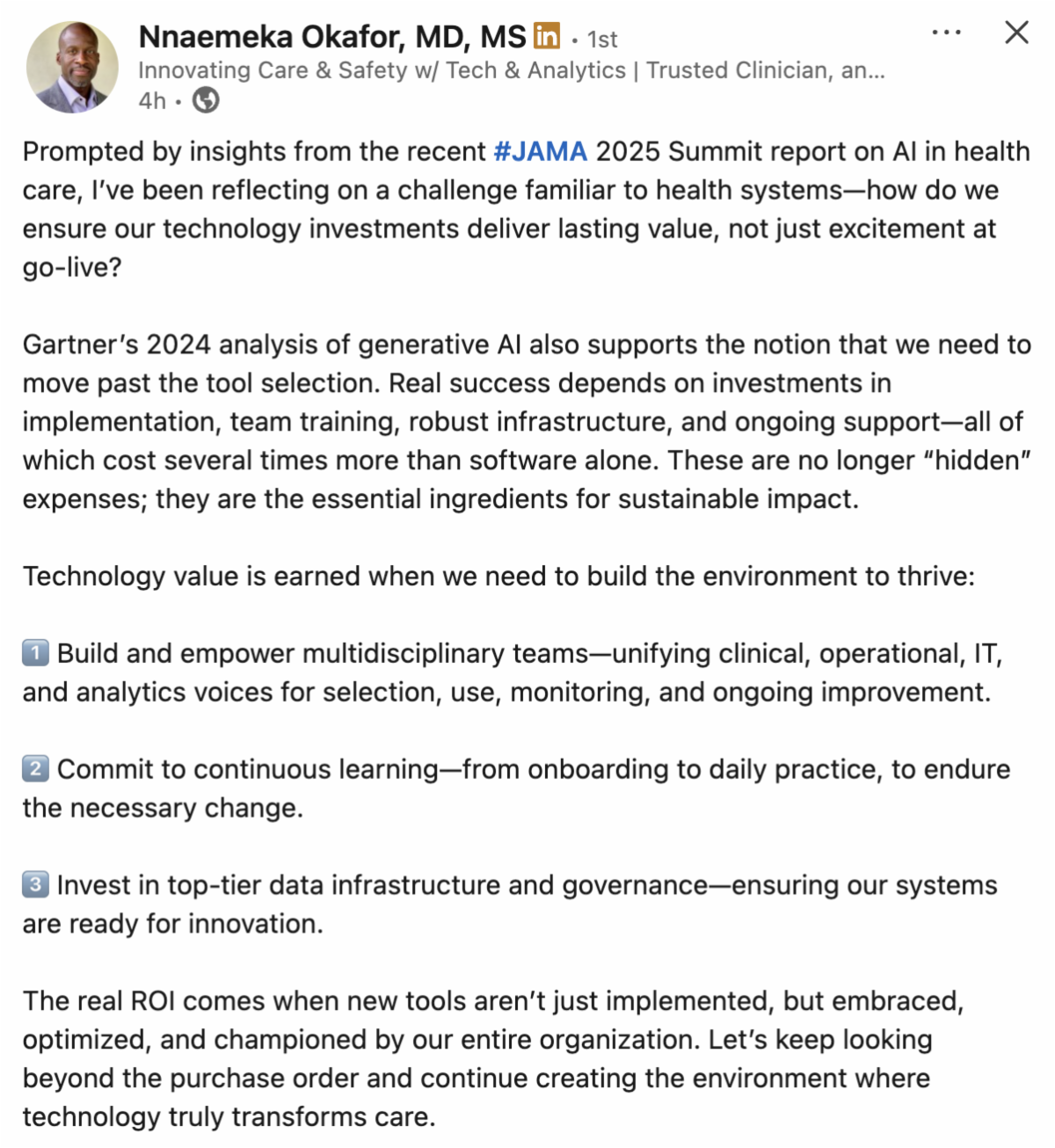 Many people tell me healthcare is in dire condition and they’re counting on technology—AI among it—to save the day. They may be right. But we must work harder to understand how new tools affect the patient experience. Doing anything less is negligent. Even in IT, let’s first do no harm.