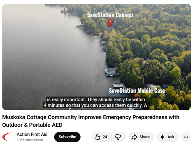 | | Thank you to our friends at the Chaffey's Area Lakes Association for including a call-out in the rotating banner on their website homepage that reads: "Did you know that as a member of CALA you are automatically a member of the Federation of Ontario Cottagers' Associations and are entitled to all of their member benefits" with a link to the FOCA benefits webpage for access to the most current offers. Thanks for sharing the news, CALA. | | FOCA Members Featured in New Cardiac Safety Video | | |