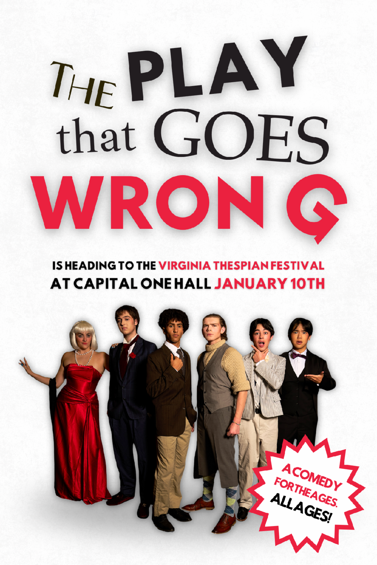 Saxon Stage had a successful opening to its theatre season. As the seats were filled and laughter was had by all, Saxon Stage's production of The Play That Goes Wrong! was a hit for all ages! In fact, Saxon Stage's production was selected by the State Thespian Festival and will be performing on the Capital One Hall stage on Sat, Jan 10, 2026, as the State Thespian Festival mainstage performance. A big congratulations to the cast, crew, and production team.