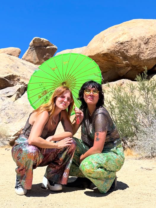 Watch the duo shred while dancing and having a few laughs. Apostolopoulos credits her all-female Video Crew for their song Never Backing Down: Director Eliana Mullins, associate producer Michelle Farrah Huang, Costumer Madou O'Byrne, and her partner in Good Juice-crime Steph Sloan.