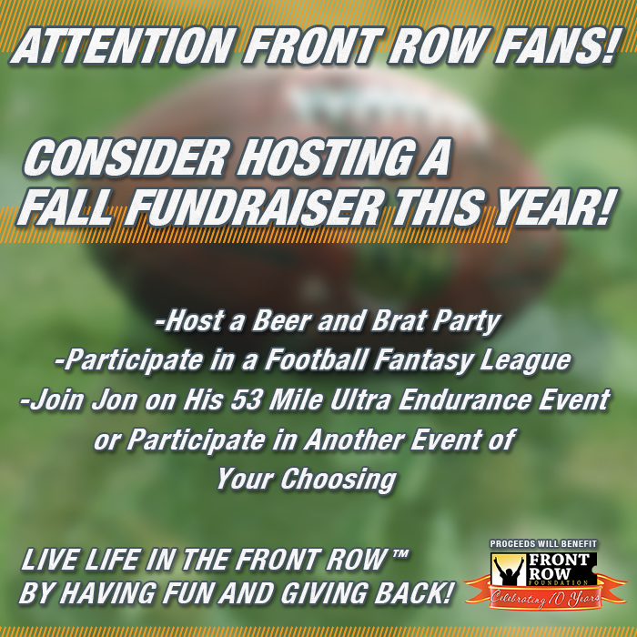 $10,000 for Front Row while he runs alongside Jon during the Ultra Run. Thank you Tim for your love and commitment. We will be cheering you on!